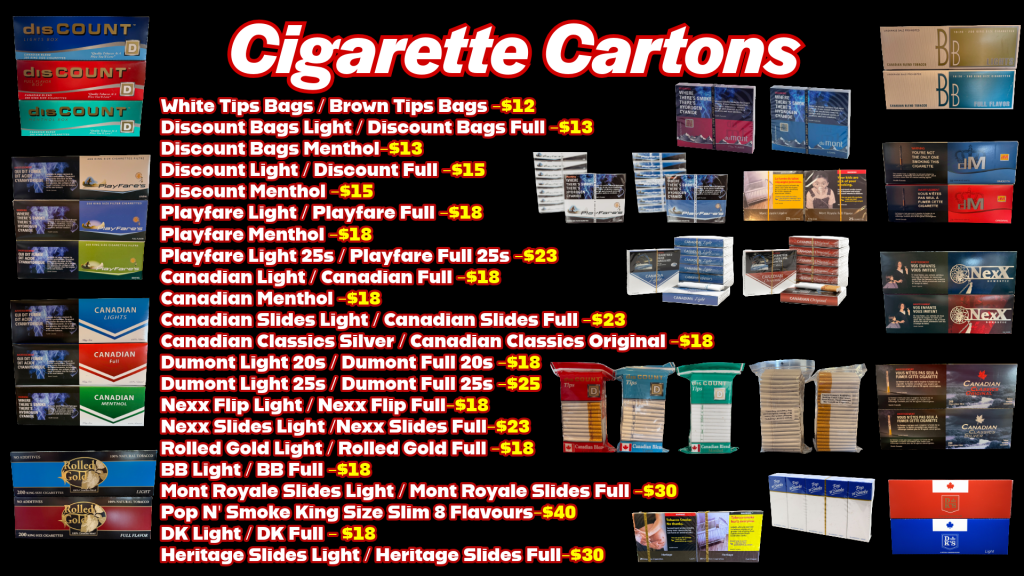 -Scroll down to see cannabis, nicotine, cigarettes, and more. Our menu is updated daily. -Faites défiler vers le bas pour voir le cannabis, la nicotine, les cigarettes et plus encore. Notre menu est mis à jour quotidiennement.